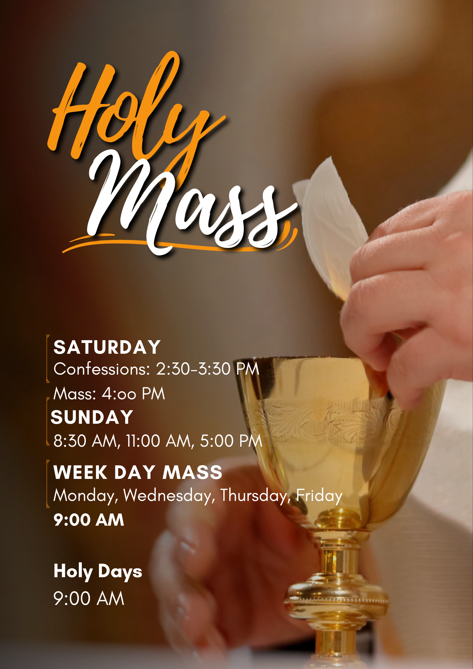 For Holy Days of Obligation: Masses will be at 9 AM .