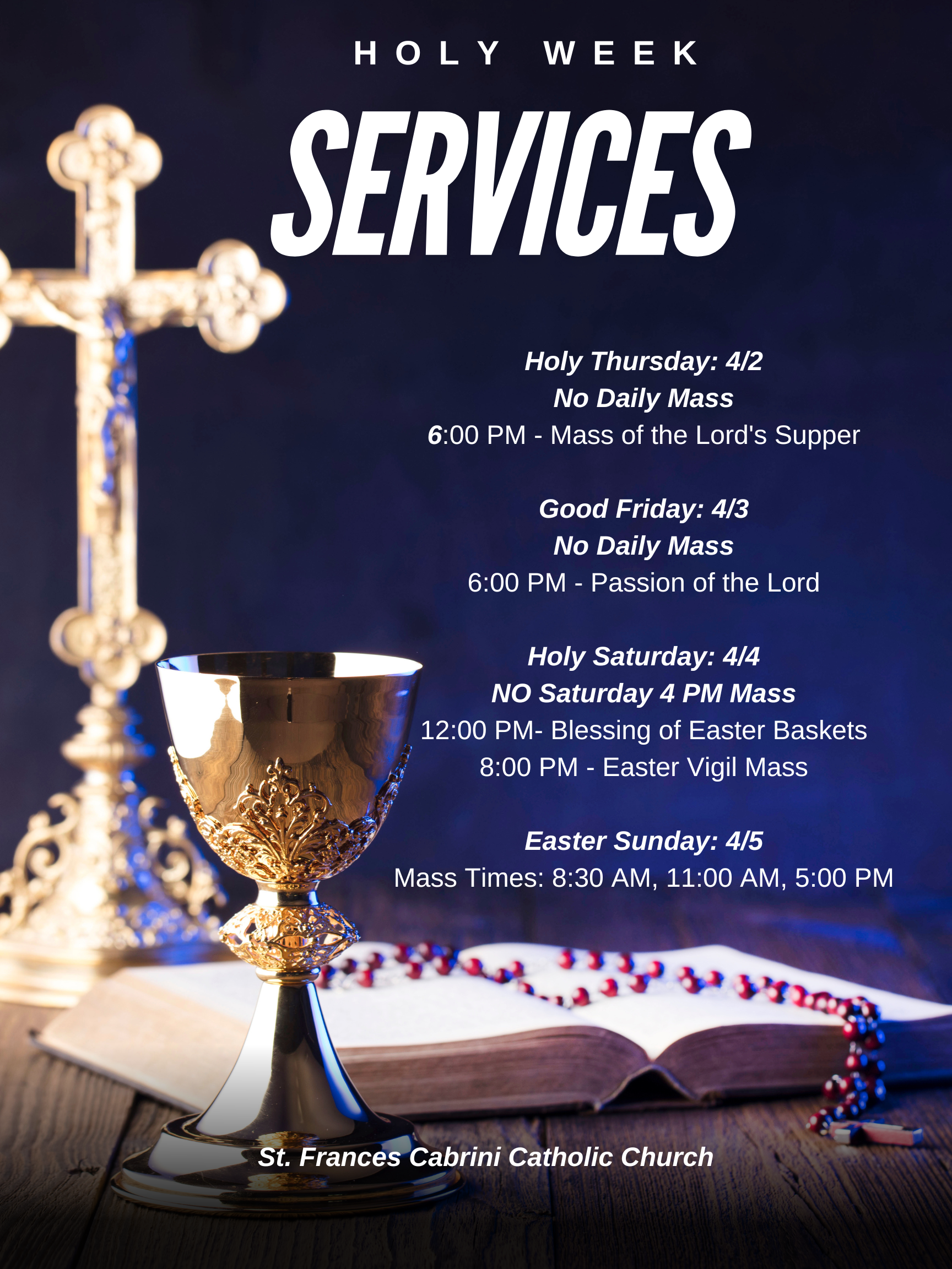 Interested in joining St. Frances Cabrini Catholic Church? New parishioners are invited to fill out and submit a registration form so that we may serve you better.